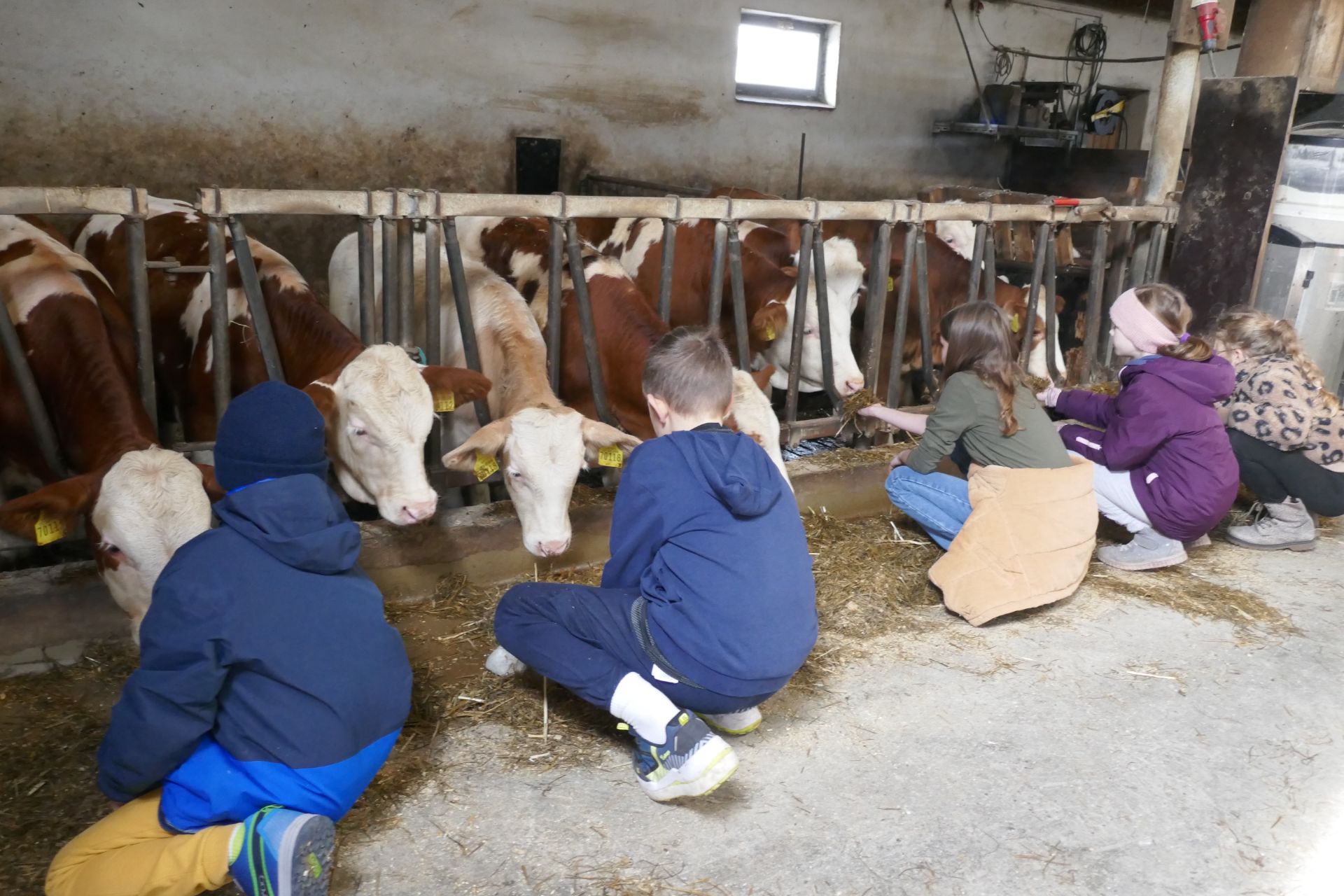 Die Klassen 4a und 4b besuchten im Oktober 2025 den Erlebnisbauernhof Engelhardt. Dort erlebten sie das Arbeiten und Leben auf dem Hof und mit den Tieren. Sie durften Butter schlagen, Getreide mahlen, selbst im Stall mit anpacken und die Kühe füttern.