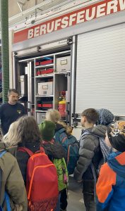 /Am 24. Februar 2025 durfte die Klasse 3a die neue Wache der Fürther Feuerwehr erkunden. Unter der Anleitung von Feuerwehrmann Flo absolvierten die Kinder einen Kooperationsparcours, kleideten Frau Ott als Feuerwehrfrau ein und stellten ihr Können mit dem Löschschlauch unter Beweis. Sogar das Ausrücken zu einem Einsatz konnten wir live beobachten